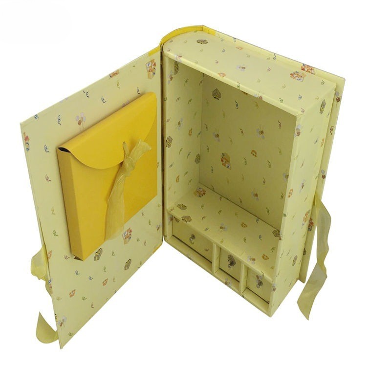 3 Drawers Foldable Gift Boxes Yellow Keepsake Jewelry Box Flip Top Boxes With Magnetic Closure Images |